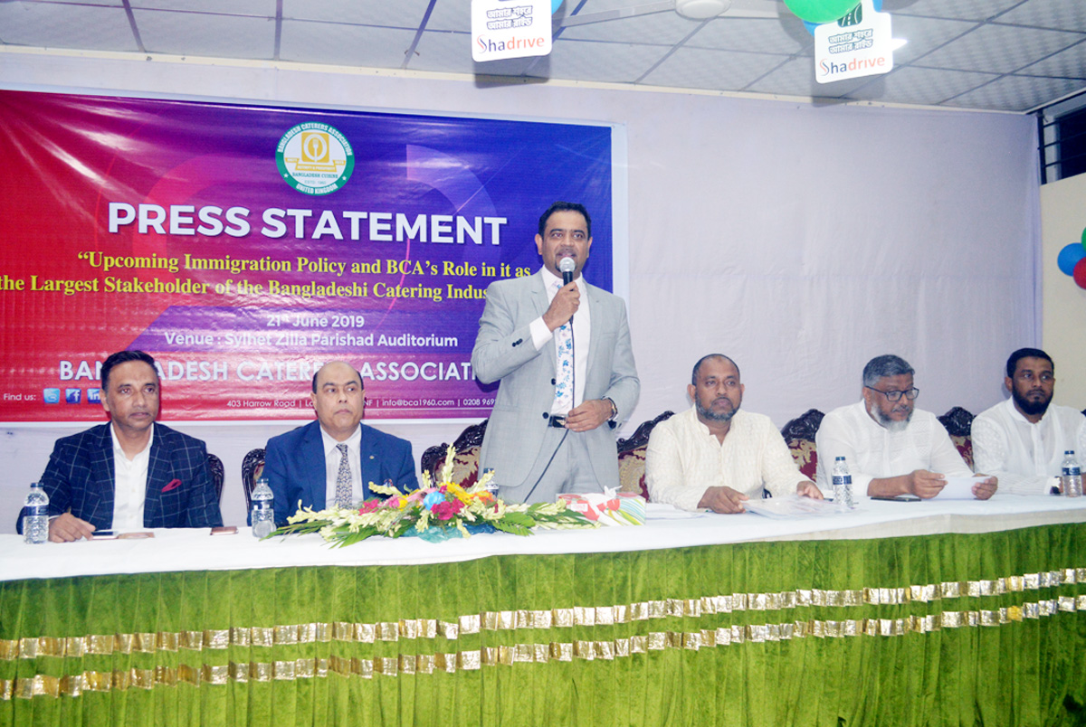বৃটেনের ইমিগ্রেশন অধিদপ্তর দক্ষ ও অদক্ষ স্টাফ ইউরোপীয় ইউনিয়নের বাইরের দেশ থেকে নেয়ার ব্যাপারে সম্প্রতি সেদেশের সরকারকে সুপারিশ করেছে। এই সংবাদটিকে পুঁজি করে বৃটেন এবং বাংলাদেশে, বিশেষ করে সিলেটে এখনই ‘লন্ডন যাওয়ার বিধিনিষেধ উঠে গেছে’ এমন সংবাদ প্রচার শুরু হয়েছে এবং দালালচক্র ইতিমধ্যে মানুষের কাছ থেকে লাখলাখ টাকা হাতিয়ে নিতে শুরু করেছে। এ ব্যাপারে সিলেটের জনগনকে সতর্ক করেছেন বাংলাদেশ ক্যাটারার্স অ্যাসোসিয়েশন নেতৃবৃন্দ। তারা বলছেন, এখনো তা সুপারিশের পর্যায়েই রয়েছে এবং তা কার্যকর হতে আরো সময় লাগবে। যদি কার্যকর হয় তাহলেও তা আগামী বছরের পর। ২০২০ সালে পাইলট প্রকল্প গ্রহন করা হতে পারে এবং তা সফল হলে আরো পরে সম্পুর্ণ আইন প্রণয়ন ও কার্যকর হতে পারে। শুক্রবার সন্ধ্যায় সিলেট জেলা পরিষদ মিলনায়তনে আয়োজিত এক সংবাদ সম্মেলনে তারা এসব তথ্য জানান। সংবাদ সম্মেলনে লিখিত বক্তব্যে তারা বলেন, ইউরোপের বাইরের দেশ থেকে বৃটেনের বাংলাদেশী কারি শিল্পে দক্ষ ও অদক্ষ শ্রমিক নেয়ার যৌক্তিকতা তারা ভালোভাবেই সরকারের কাছে তুলে ধরতে পেরেছেন। আর তাই ইউকে ইমিগ্রেশন অধিদপ্তর এ ব্যাপারে সরকারের কাছে সুপারিশ করেছে। এটি তাদের দীর্ঘ আন্দোলন সংগ্রামের ফসল বলেও দাবি করেছেন তারা। সংবাদ সম্মেলেনে নেতৃবৃন্দ বলেন, আগে যেসব রেষ্টুরেন্ট টেকওয়ে সার্ভিস ছিল, তারা ওয়ার্কপারমিটের আওতায় ছিলনা। বর্তমান সুপারিশে তাদের এর আওতাভুক্ত করতে বলা হয়েছে। বিসিএ মনে করছে এতে কারি ইন্ডাষ্ট্রির স্টাফ সংকট দুর হবে। বর্তমানে বৃটেনের অর্থনীতিতে বাংলাদেশী কারি শিল্পের অবদান প্রায় ৪.২ বিলিয়ন ডলার। অইউরোপিয় দেশ থেকে স্টাফ নেয়ার সুযোগ সৃষ্টি হলে এ সেক্টর থেকে সরকারকে আরো অনেক বেশি রাজস্ব দিতে পারবেন তারা। এ ব্যাপারে তারা ধারাবাহিকভাবে সরকার ও রাজনৈতিক নেতৃবৃন্দের সাথে আলোচনা চালিয়ে যাবেন। সংবাদ সম্মেলনে বিসিএ নেতৃবৃন্দ বলেন, পুরো বিষয়টি নিয়ে সরকারের সাথে আরো অনেক কাজ করতে হবে। আমরা তা করবো এবং যদি সরকার সুপারিশটি বাস্তবায়ন করে তাহলে আগামী বছর নাগাদ পাইলট প্রকল্প নেয়া হবে। এরপর সুফল পেলে তা পুরোপুরি কার্যকর করবে। অথচ লন্ডন এবং সিলেটে এখনই দালাল চক্র লাখলাখ টাকা হাতিয়ে নিতে শুরু করেছে। তারা নানাভাবে ‘নিষেধাজ্ঞা উঠিয়ে নেয়া হয়েছে’, ‘আবারো লোক পাঠানো শুরু হচ্ছে’ ইত্যাদি প্রচারণা চালাতে শুরু করেছে যা মোটেও সত্য নয়। নেতৃবৃন্দ এ ব্যাপারে সিলেটবাসীর সতর্কতা কামনা করে বলেন, দালাল ধরে ১০ লাখ ১৫ লাখ টাকা খরচ করে লন্ডন যাওয়া লাগবেনা। যদি কারি শিল্পে বৈধভাবে যাওয়ার সুযোগ সৃষ্টি হয় তাহলে আমাদের ওয়েবসাইটে সঠিক খবর ও প্রক্রিয়া সম্পর্কে জানতে পারবেন। সংবাদ সম