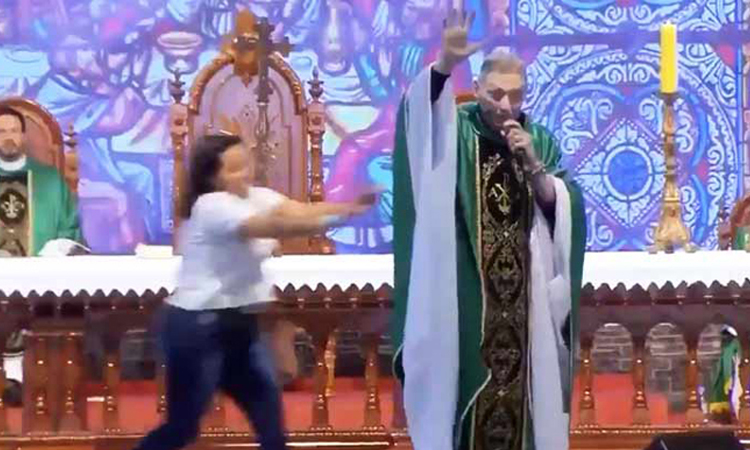 ‘মোটা নারীরা স্বর্গে যেতে পারবেন না’, ফাদারের এমন কথা মেনে নিতে পারেননি এক মোটা তরুণী। তাই রেগে ক্ষুব্ধ হয়ে ফাদারকে ধাক্কা মেরে ফেলে দিয়েছেন। এই ঘটনা ঘটেছে ব্রাজিলের এক গির্জায়।