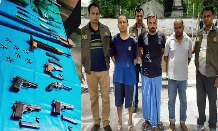 গত শুক্রবার রাত সাড়ে ৮টার দিকে অভিযান চালিয়ে এসব অস্ত্র ও গুলি উদ্ধার করা হয়েছে। গ্রেফতার করা তিনজন হলেন- খান মোহাম্মদ ফয়সাল (৩৮), জিয়াউল আবেদীন ওরফে জুয়েল (৪৫) ও মো. জাহিদ আল আবেদিন ওরফে রুবেল (৪০)। তাদের কাছ থেকে একটি একে-২২ রাইফেল, চারটি বিদেশি পিস্তল, একটি বিদেশি রিভলবার ও বিভিন্ন অস্ত্রের ৪৭ রাউন্ড গুলি উদ্ধার করা হয়েছে।