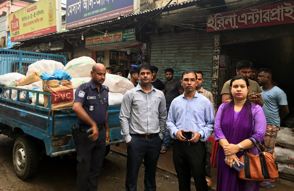 শহরের পশ্চিম বাজারের মেসার্স আল আমিন স্টোর সরকারের নিষিদ্ধ পলিথিন মজুদ ও বাজারজাত করে আসছিল। যা বাংলাদেশ পরিবেশ সংরক্ষণ আইন, ১৯৯৫ (সংশোধিত ২০১০) এর ধারা ৬ (ক) লংঘন করে।