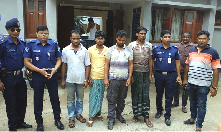 হিজড়াদের গাড়িতে ডাকাতির মামলায় ৪ ডাকাত গ্রেফতার করে শেরপুর থানা পুলিশ। ছবি: ইত্তেফাক