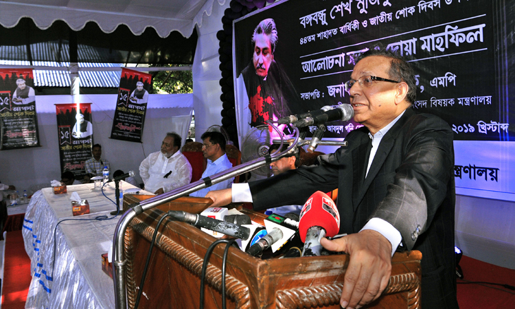 আজ রবিবার ঢাকায় নিবন্ধন অধিদপ্তর প্রাঙ্গণে জাতির পিতা বঙ্গবন্ধু শেখ মুজিবুর রহমানের ৪৪ তম শাহাদাত বার্ষিকী ও জাতীয় শোক দিবস উপলক্ষে আইন মন্ত্রণালয়ের উদ্যোগে আয়োজিত আলোচনা সভায় সভাপতির বক্তৃতায় তিনি এসব কথা বলেন।