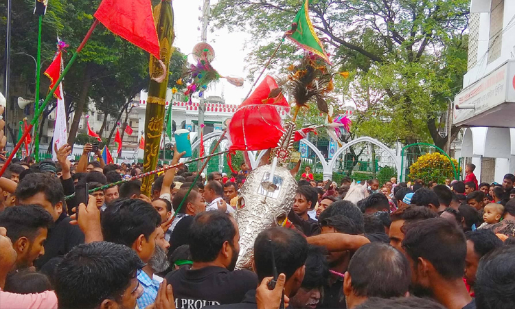 মিছিলে ঢল নামে মানুষের। বুক চাপড়ে, ‘হায় হোসেন, হায় হোসেন’ মাতমে ফোরাত তীরের কারাবালার ঘটনাকে স্মরণ করছেন তারা। এতে অংশগ্রহণকারীদের অনেকের পরনেই কালো পাজামা-পাঞ্জাবি দেখা যায়। তাদের হাতে হাতে ঝালর দেওয়া লাল, কালো, সবুজ ঝাণ্ডা রয়েছে।