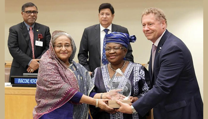 বাংলাদেশে টিকাদান কর্মসূচিতে ব্যাপক সফলতা জন্য প্রধানমন্ত্রী শেখ হাসিনাকে ‘ভ্যাকসিন হিরো’ পুরস্কারে ভূষিত করেছে গ্লোবাল অ্যালায়েন্স ফর ভ্যাকসিনেশন অ্যান্ড ইমিউনাইজেশন (জিএভিআই)।