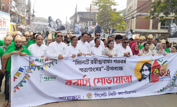শতবর্ষ স্মরণোৎসবকে স্বাগত জানিয়ে নগরীতে বর্ন্যাঢ্য শোভাযাত্রা করেছে সিলেট সিটি কর্পোরেশন। মঙ্গলবার বেলা পৌণে ১২টায় নগর ভবন থেকে র‌্যালিটি শুরু হয়ে সিলেট জেলা স্টেডিয়ামে গিয়ে শেষ হয়। সিটি কর্পোরেশনের নির্বাচিত পরিষদ, কর্মকর্তা ও কর্মচারীদের উপস্থিতিতে র‌্যালির উদ্বোধন করেন সাবেক অর্থমন্ত্রী আবুল মাল আব্দুল মুহিত।