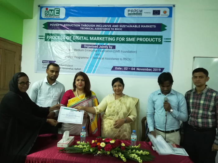 সিলেটে শেষ হল এসএমই ফাউন্ডেশন ও ইউরোপিয়ান ইউনিয়নের প্রিজম প্রকল্প- টেকনিক্যাল এসিসটেন্স টু বিসিক’র আয়োজনে “এসএমই পণ্যের জন্য ডিজিটাল মার্কেটিং” শীর্ষক ৩ দিনব্যাপী এক প্রশিক্ষণ কোর্স। নগরীর শাহজালাল উপশহরের বাংলাদেশ কম্পিউটার কাউন্সিল ল্যাবে এ প্রশিক্ষণ কোর্সের আয়োজন করা হয়।